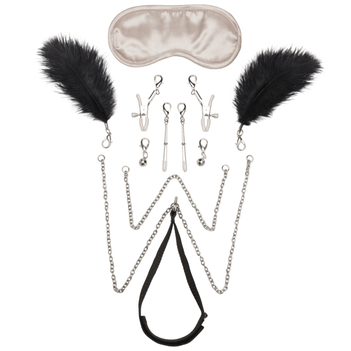 Explore the thrilling world of BDSM with the 12pc Bondage Kit, designed to immerse you fully into the realms of kink and pleasure.
