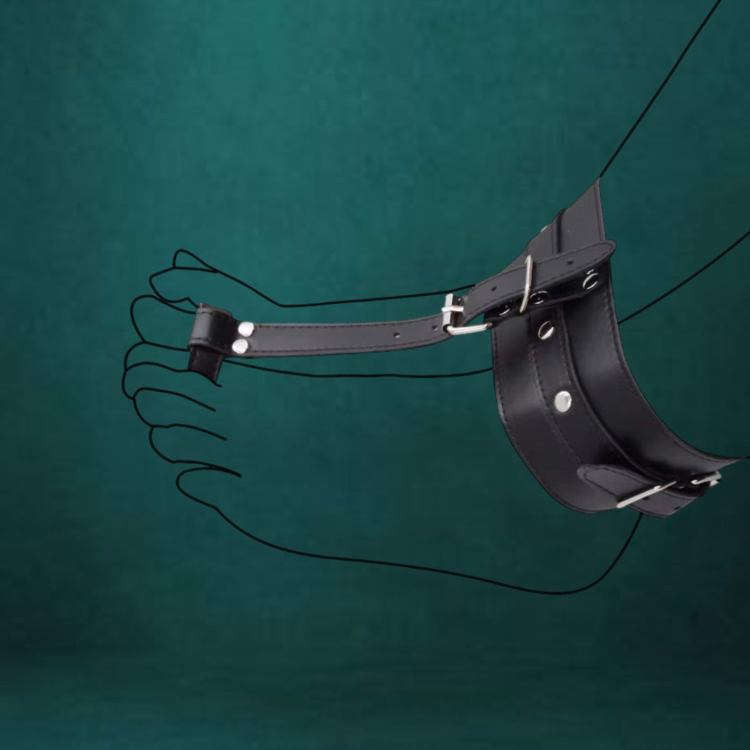 The large strap fits around both wrists and cinches them together. A second strap leads to a thumb cuff that encircles both thumbs cinching them together. the wrist cuffs are comfortable, non-poisonous and odorless, which can protect your wrists and ankles from hurting. You can enjoy passion and sex with your lover.