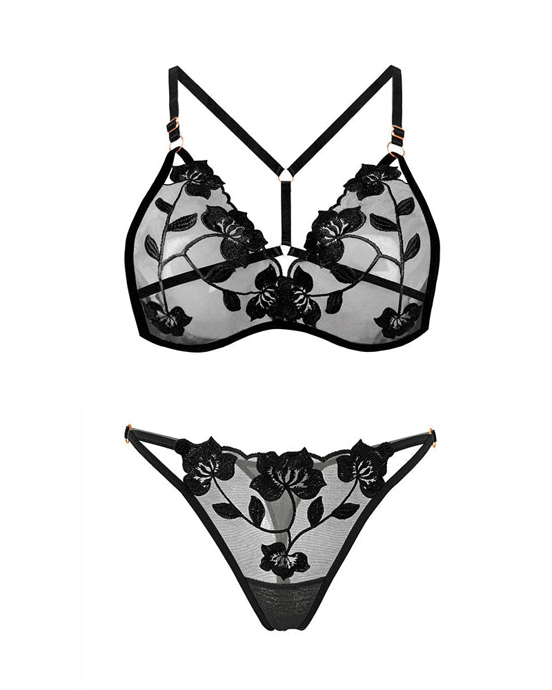 - Style: Two-Piece Floral Embroidered Lingerie Set
