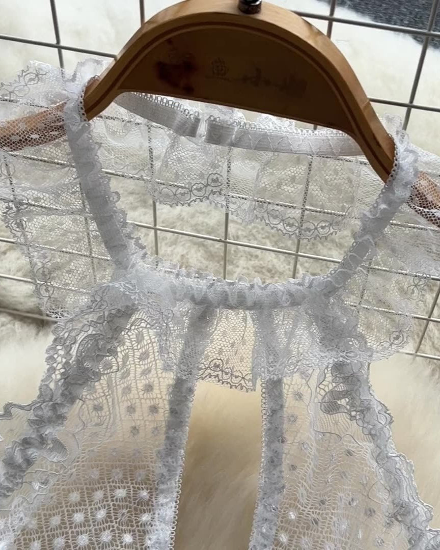 - Material: Delicate lace with sheer polka dot mesh