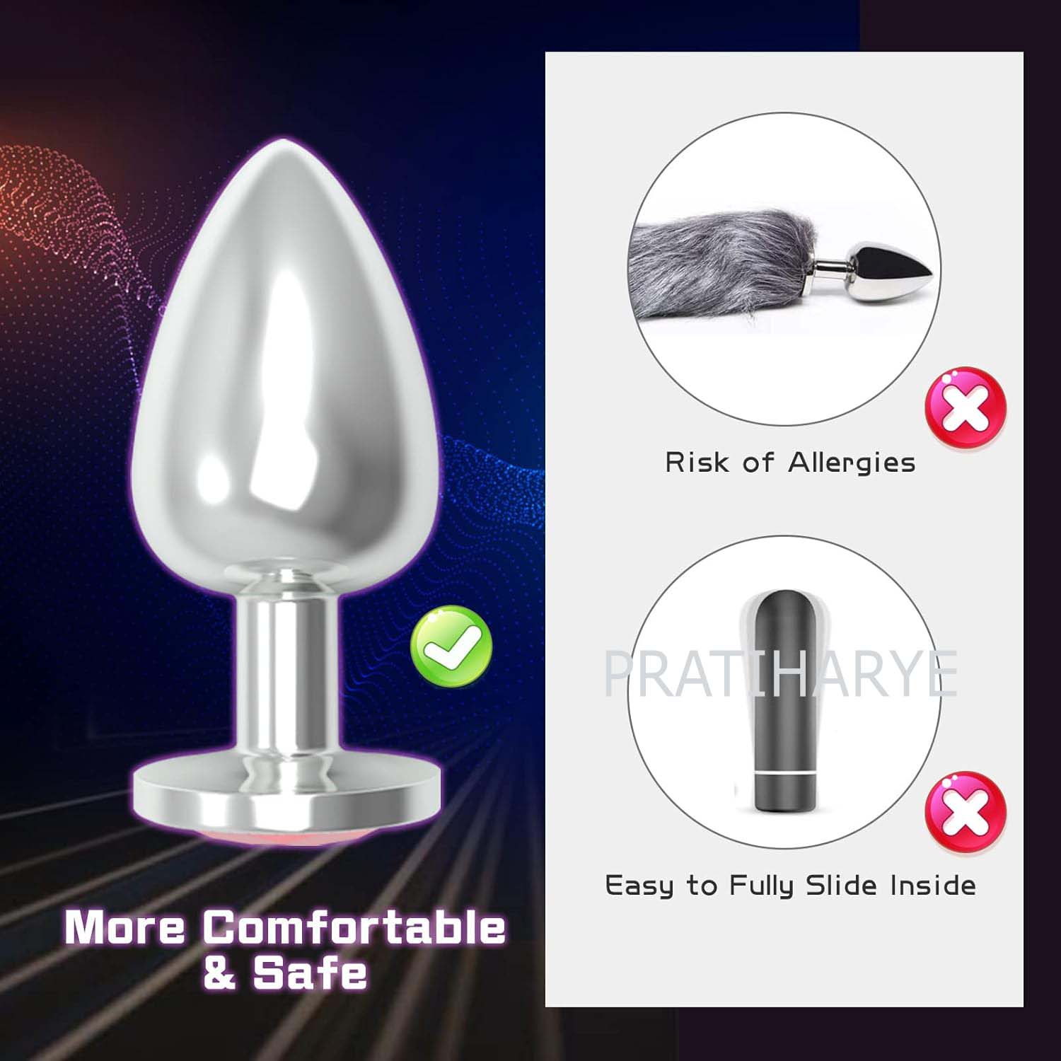 Made of high-quality premium aluminum alloy accessories, durable use and comfortable to use and not allergic. It does not harm your skin. Experience thrilling sensations with these butt plug in sex, and harmonious sex life; bring your sex life more stimulation and pleasure for romantic evenings.